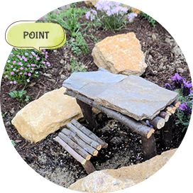 プラスチックなどの劣化しやすいものではなく、木や石、鉄といった自然に寄り添う素材で、庭の風景をつくっていきます。
