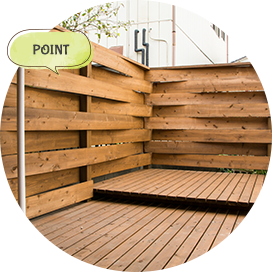 ガーデニングを楽しむための坪庭や家庭菜園ができるスペース。ウッドデッキでのんびりできるスペース。ライフスタイルの変化に合わせ、お庭の使い方を見直すきっかけとなる施工をお届けいたします。