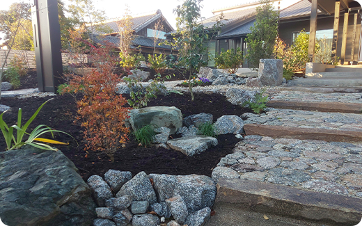 景石の設置や石積みなど、重厚感や質感を感じるデザインを取り入れた工事が可能です。